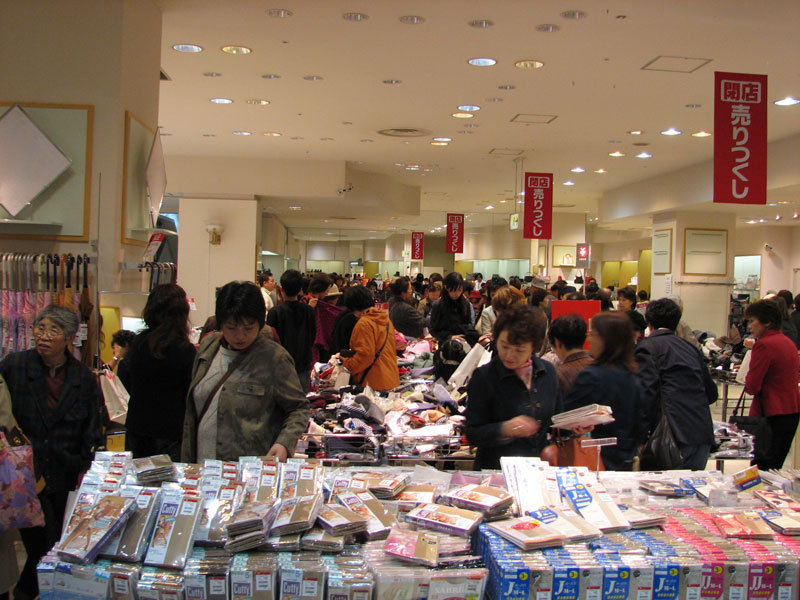 丸井今井からは、紙袋を持ったたくさんのおばさんが出てくる。