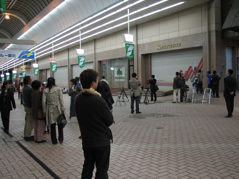 従業員が深々と礼をする中、シャッターが音を立てて下がっていく。