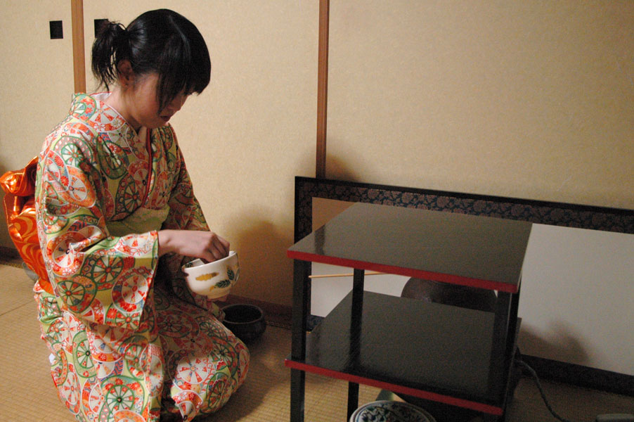 お茶とお茶菓子が出されます。茶碗をとカメラを交互に持ちながらと言うのもカメラマンならではです。