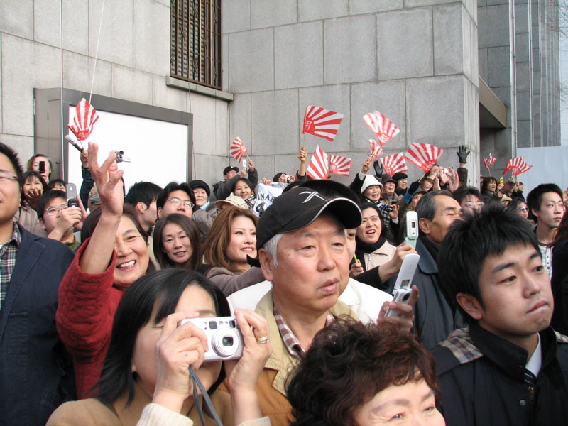 本線から外れた街路にも所狭しと人が並ぶ。さて、既に私の立ち位置はなさそうだが・・・・・・。