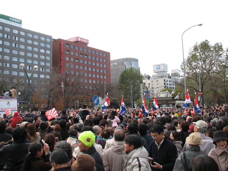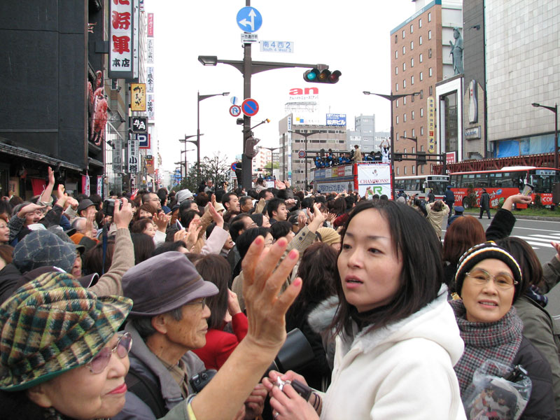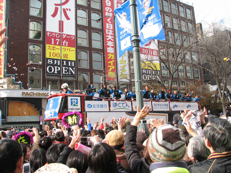 本日、その祝勝パレードが、札幌駅前通で行われる。