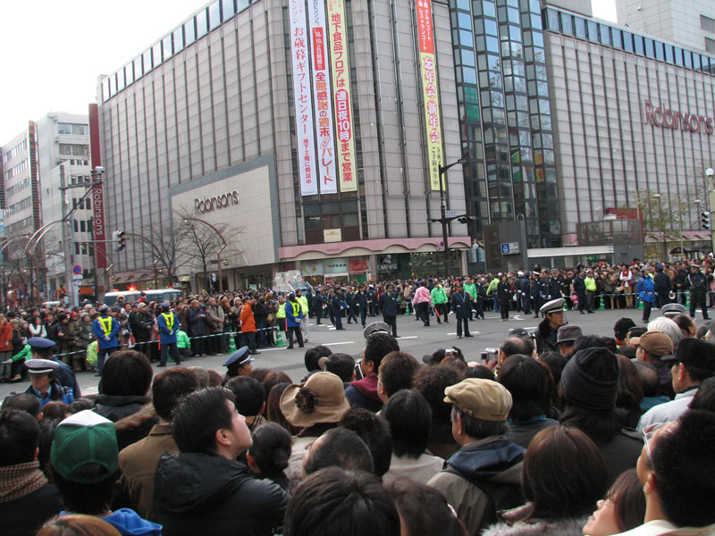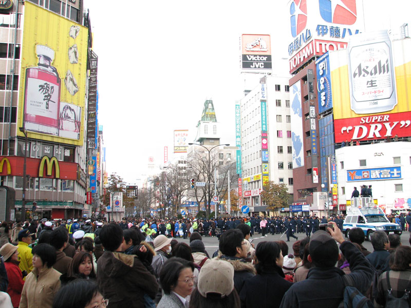地理的条件を考えると、パレードの集団がこちらに流れてくるのは自明の理。