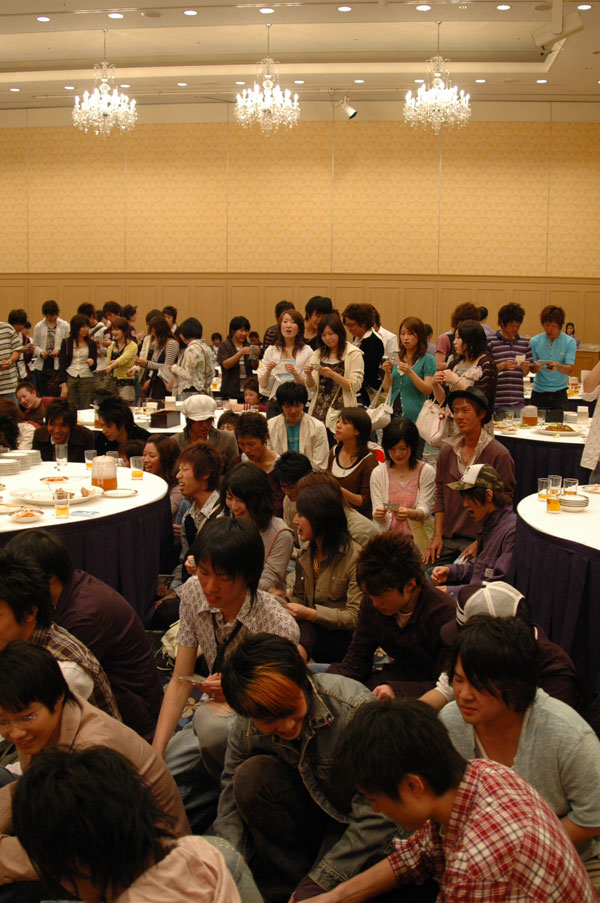 早くも周囲の人と打ち解けて、いろいろ話したり、携帯電話のアドレス交換などを行っている人もいれば