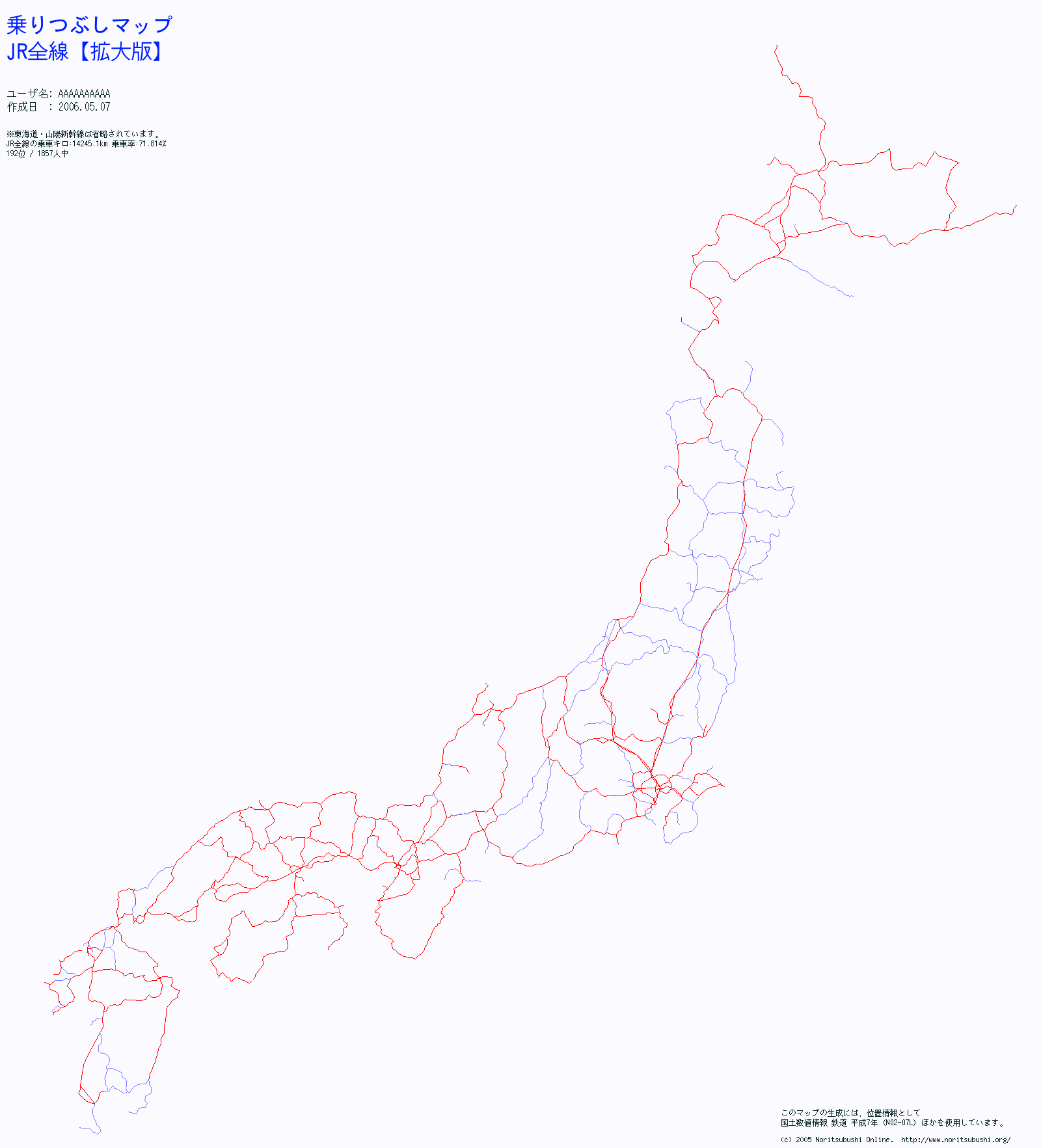 さて、私の今まで乗車した路線を入力してみた。