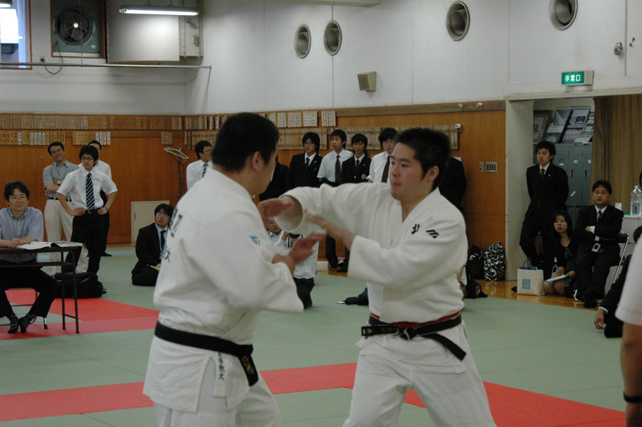 柔道の会場には選手の他に、応援団、そして学長や学生部長なども来ている。