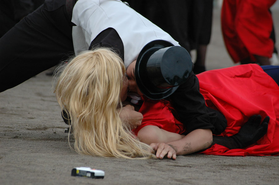 教師も女装(写真左)とか、男同士でキス(写真右)とか、だんだん過激になってきている模様。