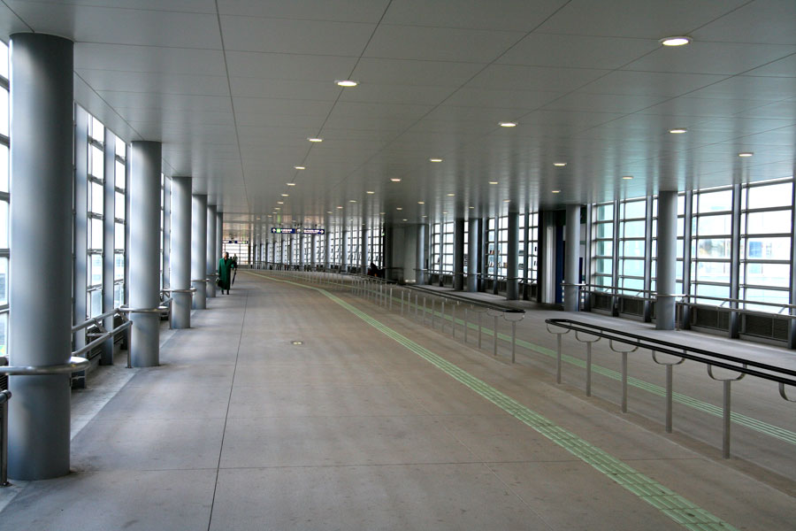 長さ50メートルほどの自由通路を利用して、