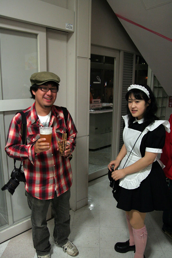 メイドさん(?)からビールを購入するy@5u5hi氏。
