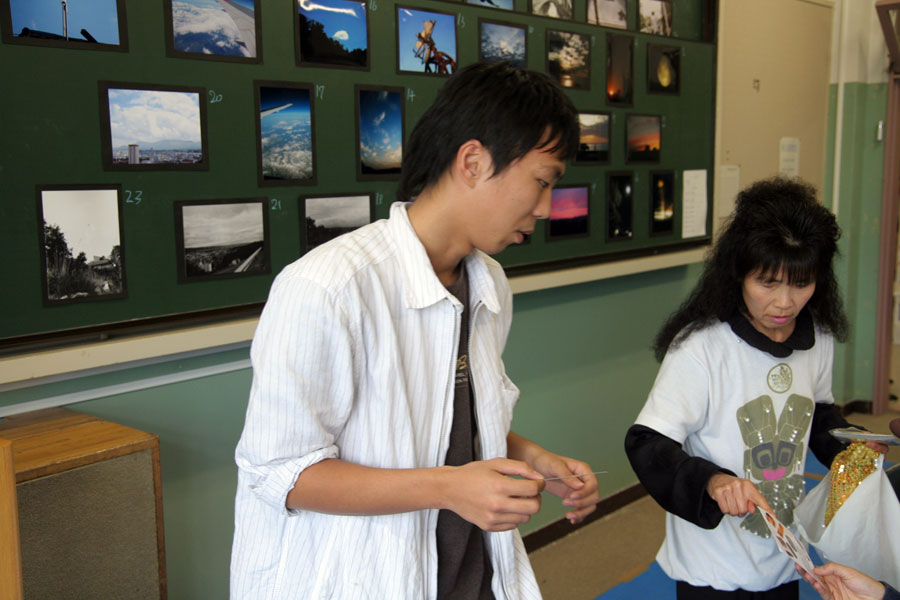写真展示会場には、ちょうど“宇宙人のりり”が来訪中だった。