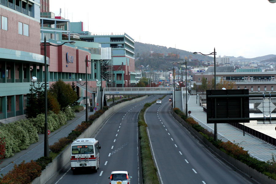 この道路は小樽の港町までずっと海の近くを通っていく。