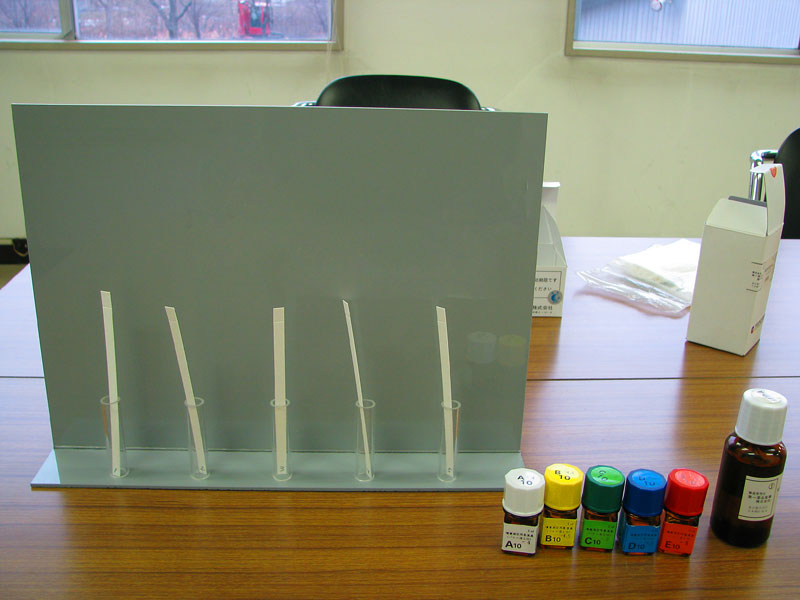 正常な嗅覚を持っている人ならば、臭い付きの試験紙は直ぐに識別できるようになっている。