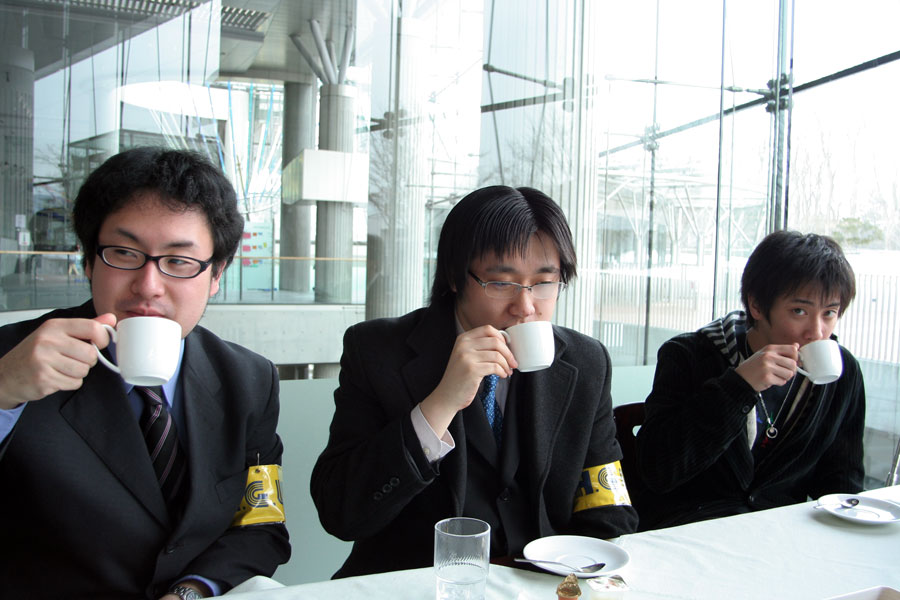 卒業式終了、ちょっとここでコーヒーブレイク!?アルバム委員が誇る精鋭メンバーである。