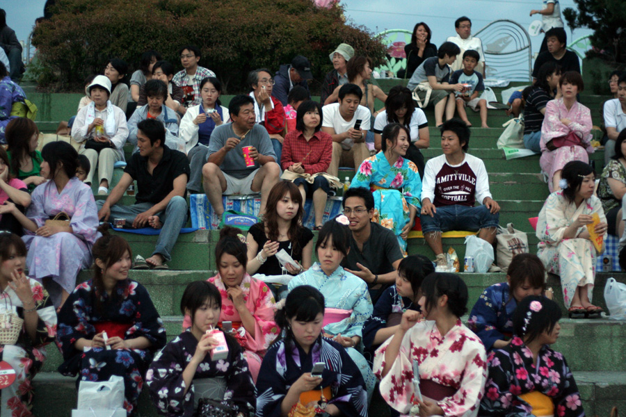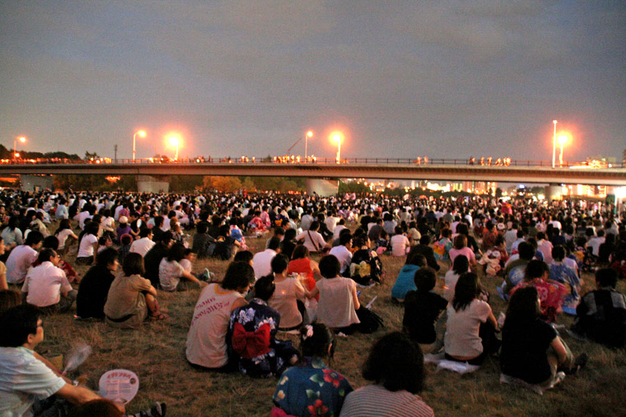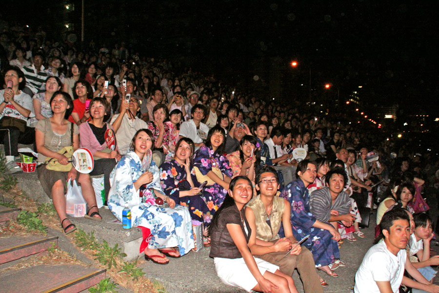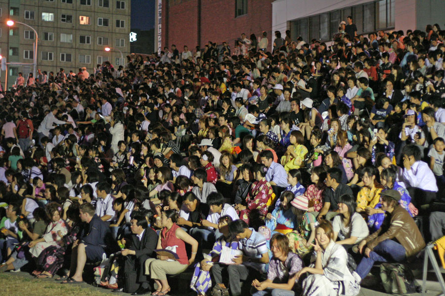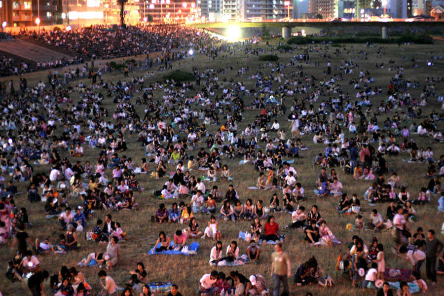 この光景、浴衣を着ている人がいなければ、演説を聞くために詰め掛けた聴衆のようにも見えるかも。