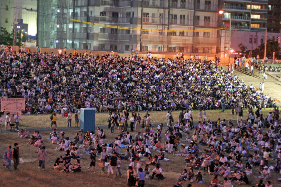 今日も河川敷は多くの人で埋め尽くされている。花火大会って、豊平川に一番多く人が集まる日だよね。