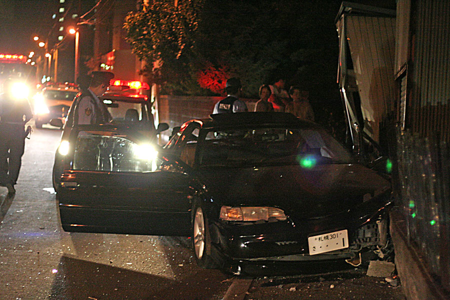 事故車、よりによってナンバー「・ ・ ・ 1」 間違いなくDQNカーじゃないか。