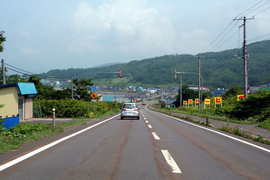 左手に海、右手に留萌本線を眺めつつ北上すると、留萌市に入る。