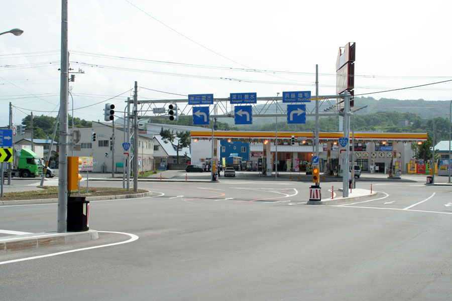 深川駅前を抜け、音江地区へ。ここが国道233号線の始点かつ国道12号線との交点だ。
