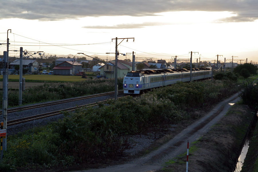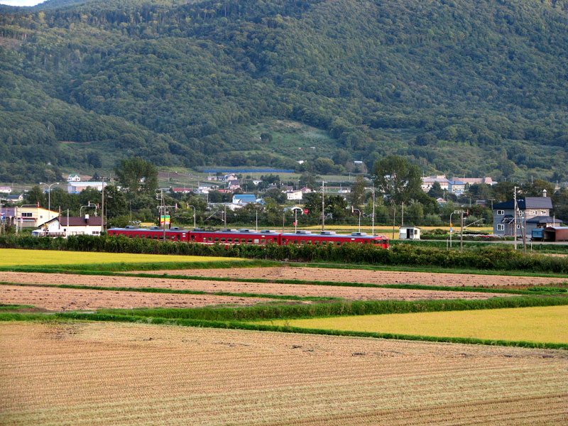 しかし折角なので、高速納内で下車し、夕日が照りつける中、列車でも撮る事にする。